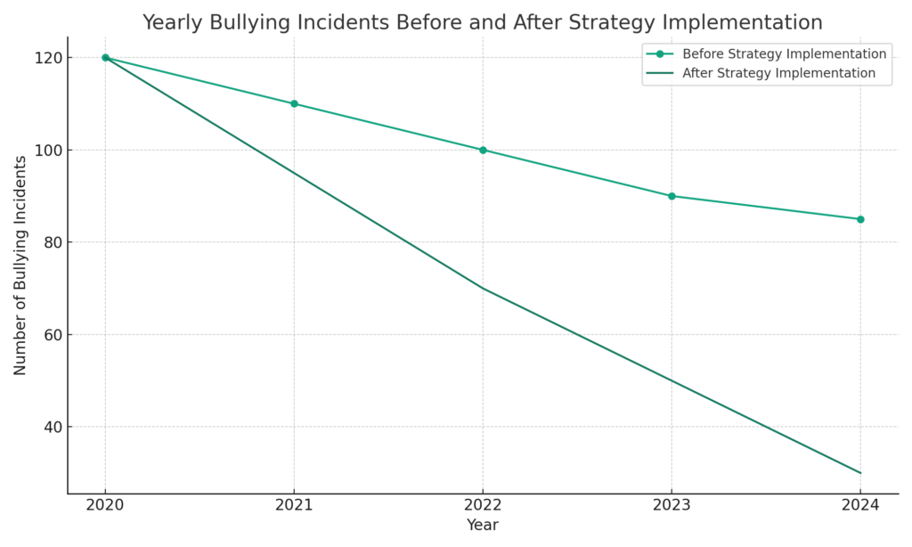 To illustrate the impact, consider this graph showing a decline in bullying incidents post-strategy implementation: