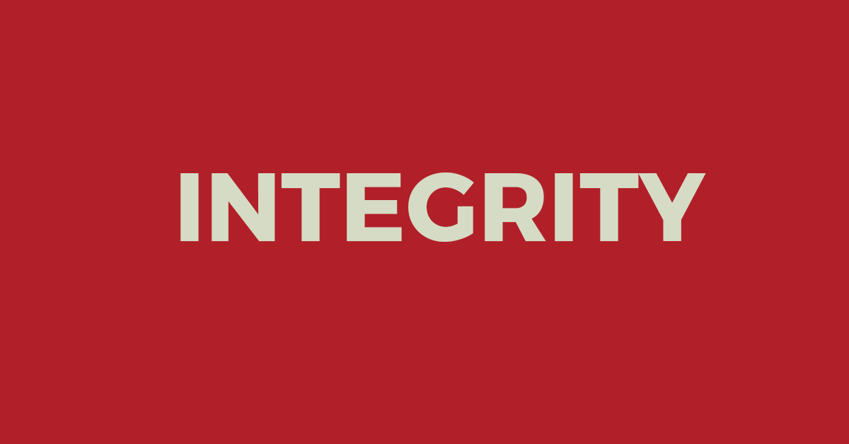 Literally, it means “completeness” or “wholeness” – it portrays the idea of consistent character that comes out of a complete, whole heart. ❤️💛💚💙💜 Someone with integrity is not only able to determine the difference between right and wrong, but is also able to stand up for what is ethically correct. Their thoughts and actions are based on values rather than personal gain.